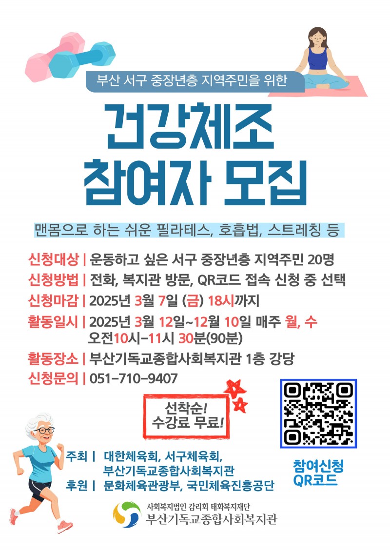 서구체육회 강사님과 함께하는 건강체조(매트 필라테스) 참여자를 모집합니다~!
