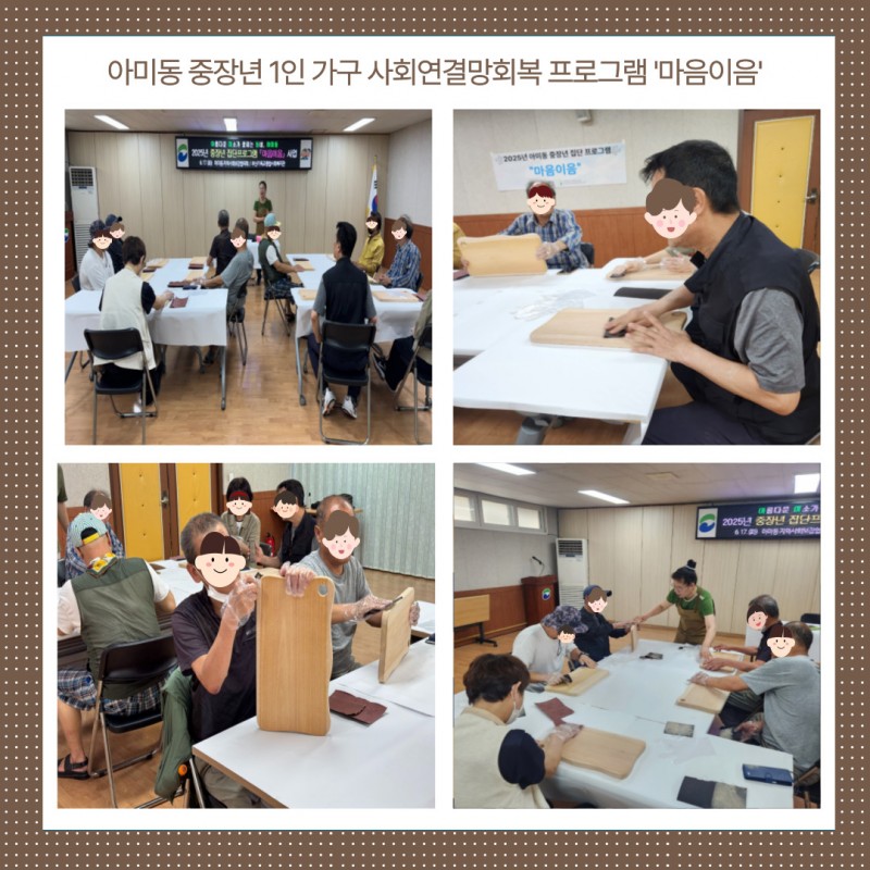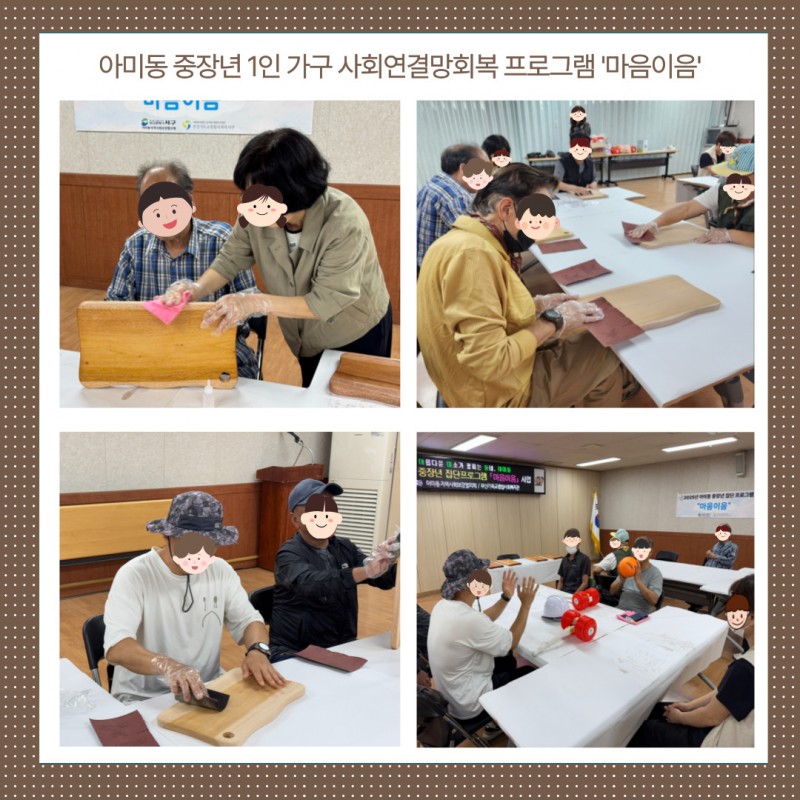 6월 17일 화요일, 아미동 중장년 1인 가구를 위한 사회연결망 회복 프로그램 3회기가 ‘도마 만들기’ 체험으로 진행되었습니다.