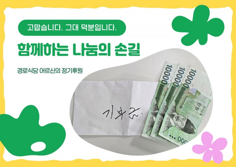누가 후원을 하셨을까 찾던 중 경로식당을 이용하고 계신 어르신이라는 이야기에