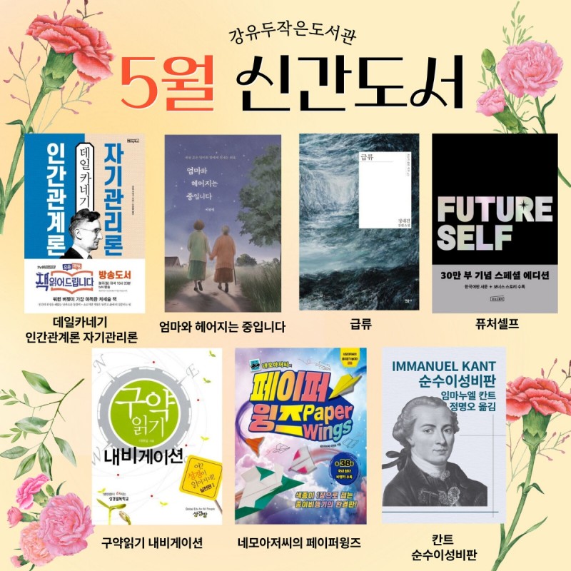 5월 신간 도서들과 문학나눔 추천도서, 우수콘텐츠 잡지 등 다양한 도서들이 비치되어있습니다~!