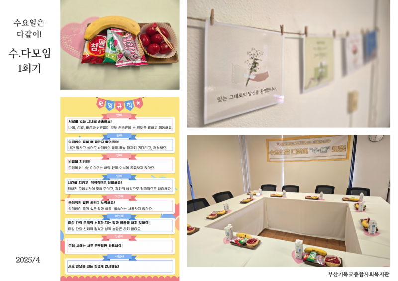 저희 복지관 사례관리팀에서 오랜 시간 준비한 정신건강 자조모임 ‘수요일은 다같이! 수.다모임’이 드디어 2025년 4월, 첫 회기를 시작했습니다!