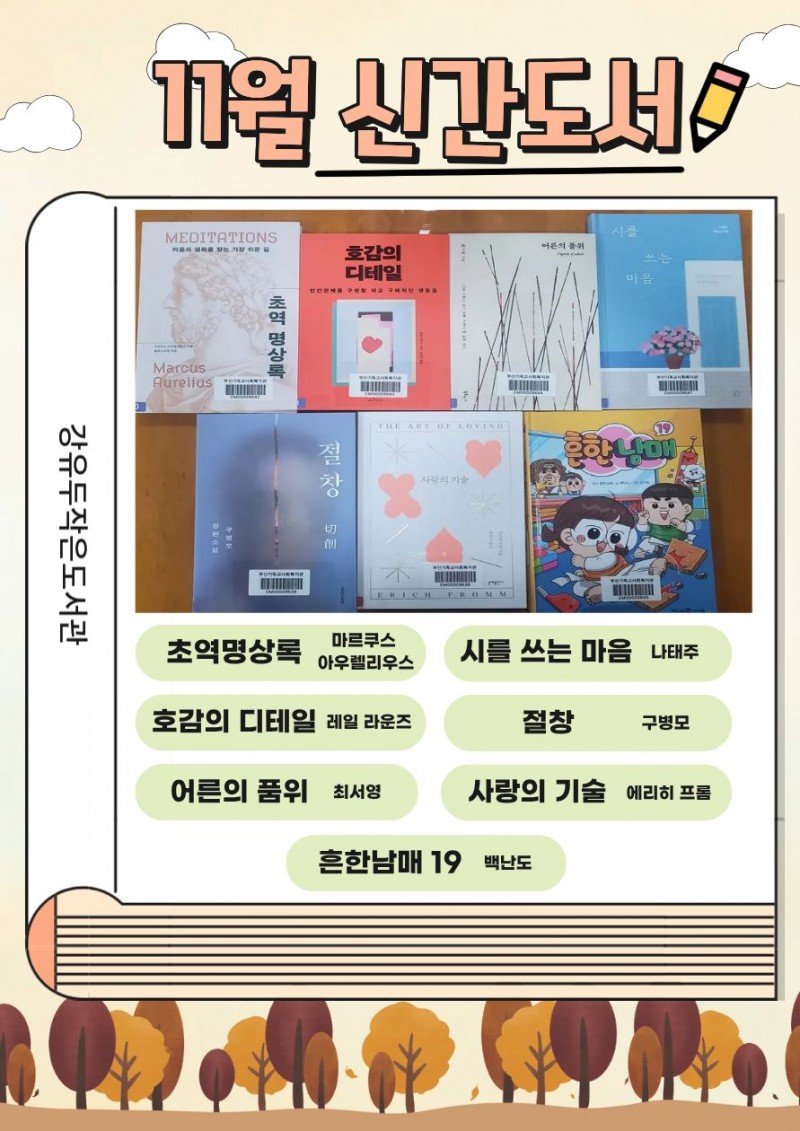 11월에도 책보러 강유두작은도서관으로 놀러오세요~