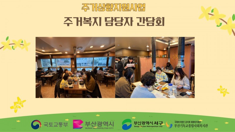 이번 간담회에는 서구 내 10개 동 주민센터 주거복지 담당자와 서구청 생활지원과, 부산기독교종합사회복지관 관계자 등