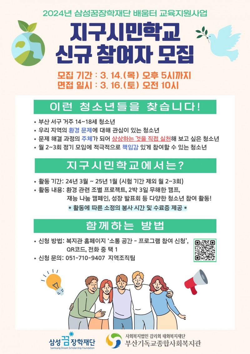 - 모집대상: 환경 문제 관련 실천에 관심이 있는 부산광역시 서구 거주 14~18세 청소년