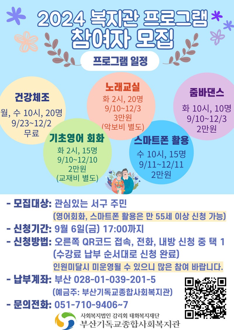 - 납부 계좌: 부산은행 028-01-039201-5 (예금주: 부산기독교종합사회복지관)