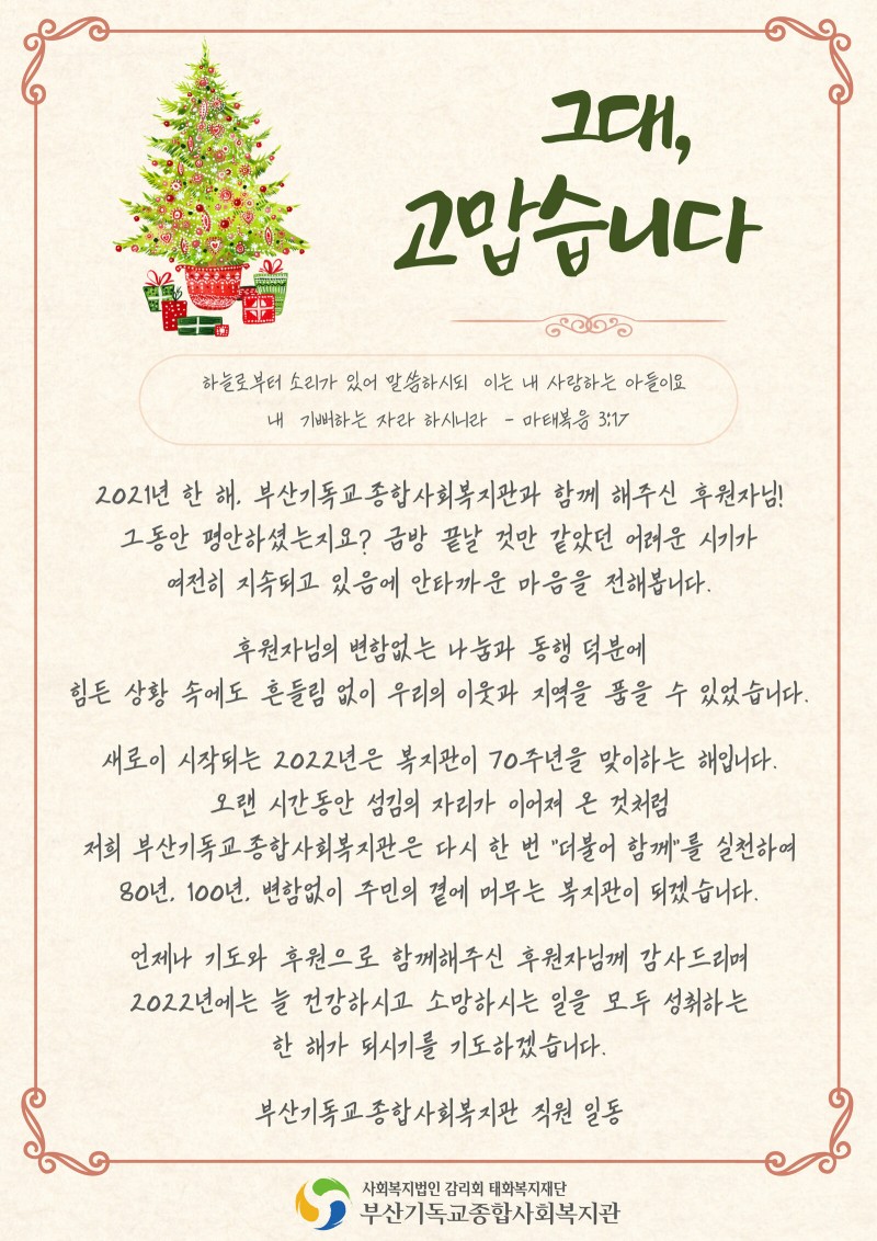 2021년을 마무리하며 많은 분들의 관심과 나눔의 손길 덕분에