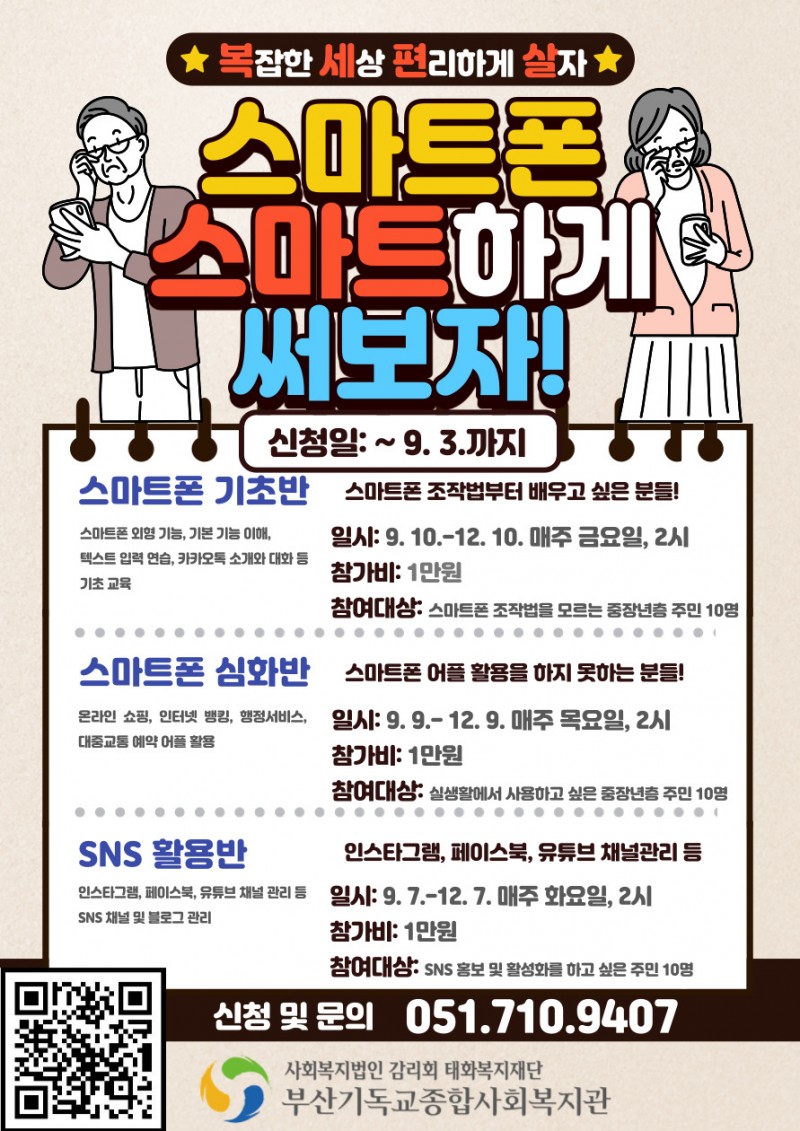 문화복지프로그램에서 진행하는 스마트폰 교육반 신청자를 모집합니다!