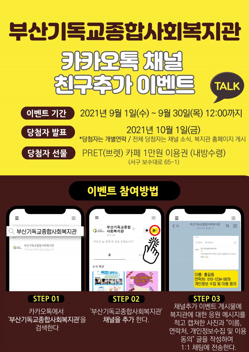 부산기독교종합사회복지관 9월 카카오톡 채널 친구추가 이벤트