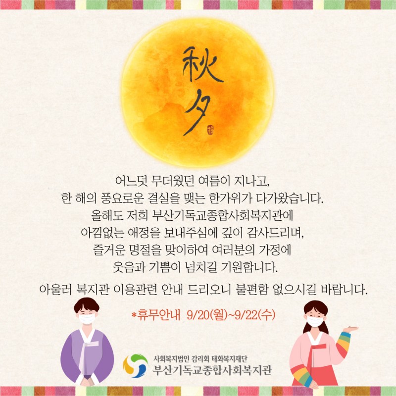 안전을 지키면서도 우리의 따뜻한 온기가 전해질 수 있는 풍성하고 풍요로운 한가위 보내시길 기원합니다.