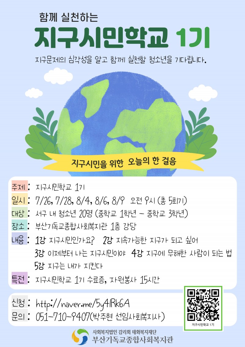 지구문제를 알고 지구시민으로 활동할 청소년을 찾습니다.