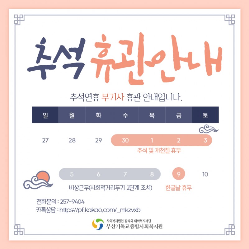 카톡상담:https://pf.kakao.com/_mkzvxb (카카오톡에서 '부산기독교종합사회복지관'을 검색해주세요)