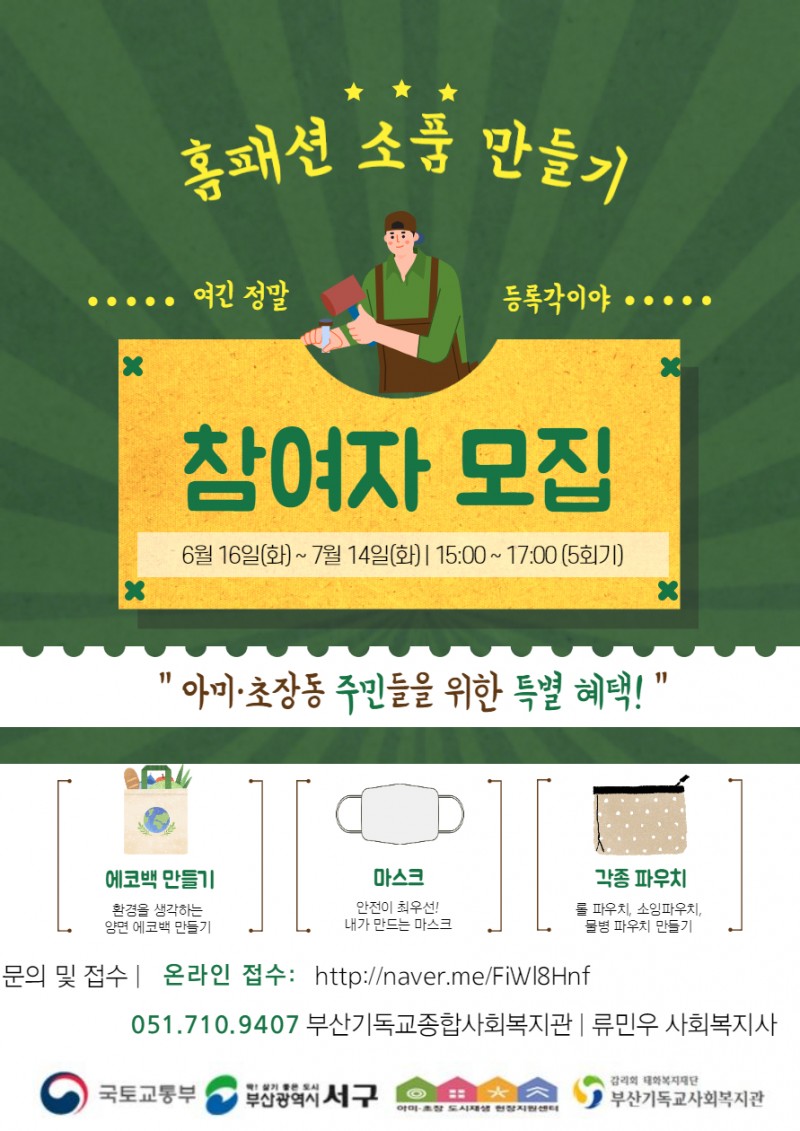 *문의 및 신청 : 1. 전 화 접 수) 부산기독교종합사회복지관 지역조직팀 류민우 사회복지사 ☎ 051-710-9407
