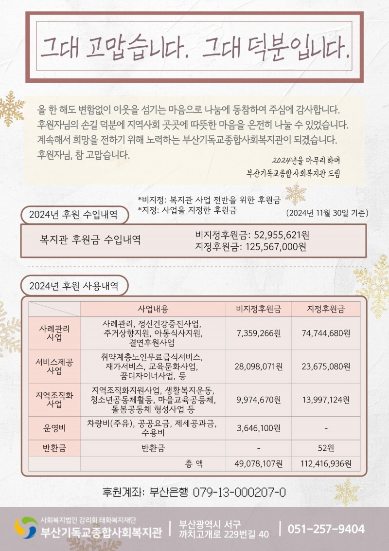 2024년 마무리하며 많은 분들의 따뜻한 관심과 나눔의 손길 덕분에