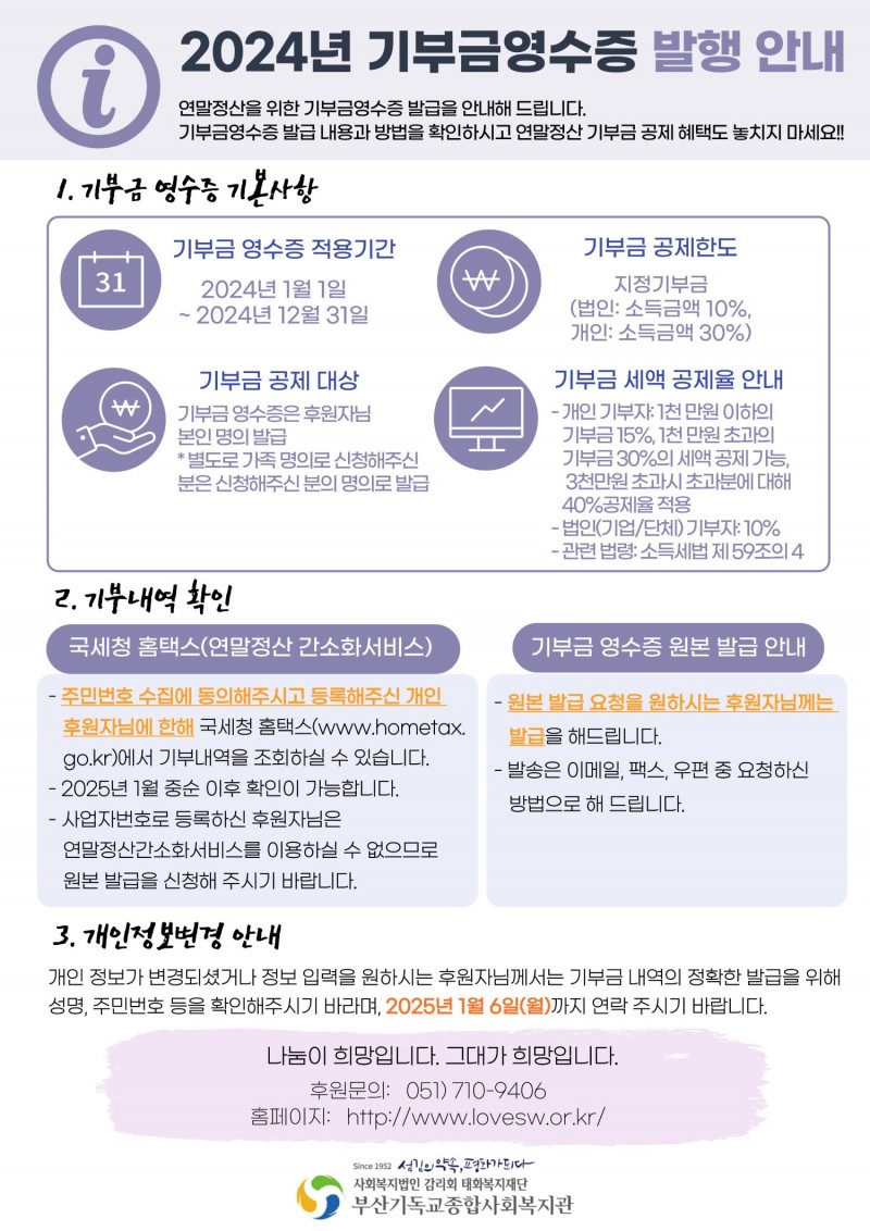 공지 2024년 후원 감사 인사 및 기부금영수증 발행 안내