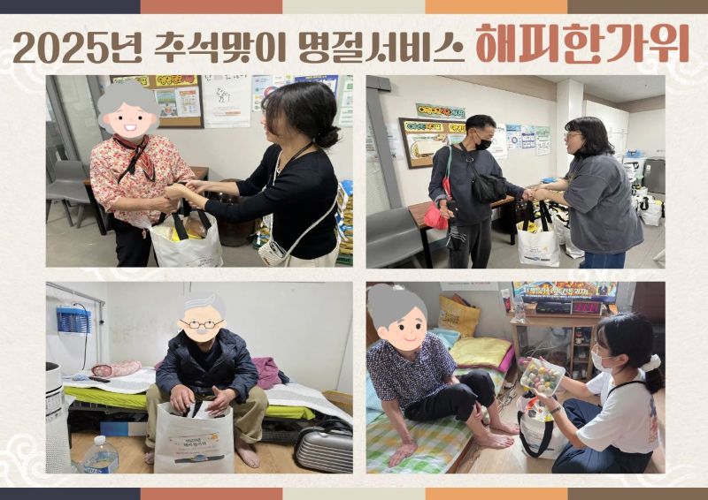 이번 ‘해피 한가위’를 위해 후원으로 함께해주신 한국전력 남부건설본부와 배달을 도와주신 노인일자리 참여자분들께 깊이 감사드립니다.