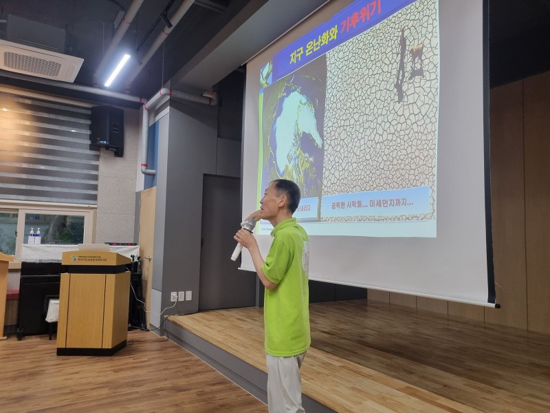그 후 자원순환시민센터 김추종 대표님께서 '지속 가능한 동네와 분리배출'이라는 주제로 기후위기의 심각성, 자원순환의 필요성, 올바른 분리배출 방법 등을 자세히 설명하며 생활 속 실천이 무엇보다도 중요함을 알려주셨습니다.