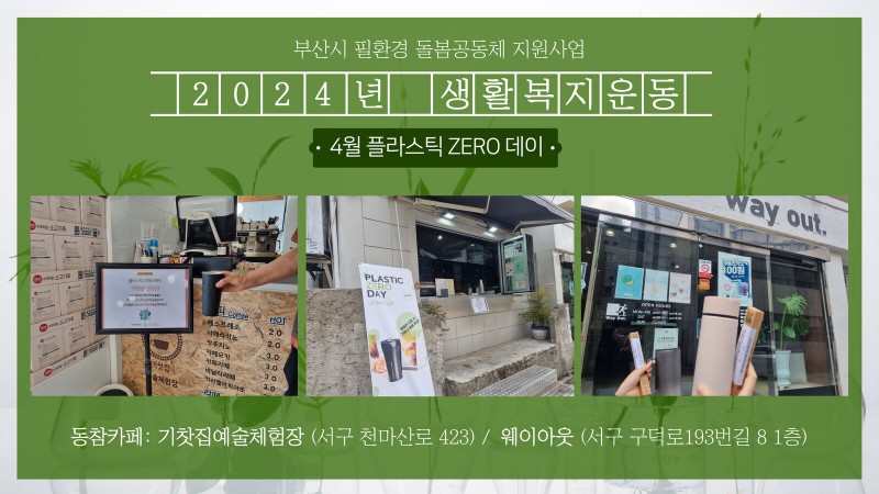 부산시 필환경 돌봄공동체 지원사업으로 진행되는 '플라스틱 ZERO 데이'를 위해 부기사와 서구 지역 카페가 다시 뭉쳤습니다!
