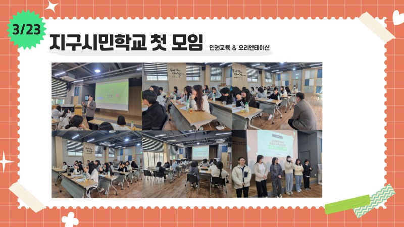 먼저는 '인권', '폭력', '감수성'을 주제로 나를 지키고 서로를 존중할 수 있는 방법을 고민해보는 인권 교육을 듣고, 지구시민이 무엇인지, 어떤 활동을 하는지, 어떤 성장을 함께 기대하는지 공유하는 시간을 가졌습니다.