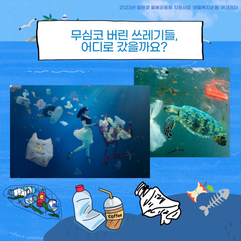 카드뉴스를 통해 무심코 행하고 있었던 일상 속, 정책 속 해양 오염의 실태를 알아보고 어떤 실천을 할 수 있을지 함께 고민해보는 시간이 되었으면 합니다.