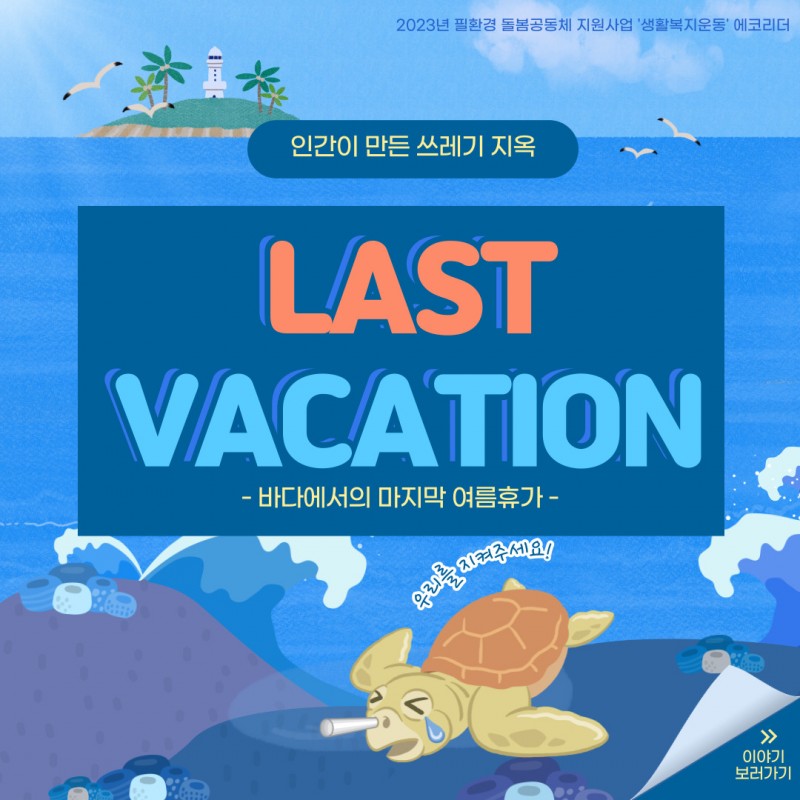 'Last vacation'이라는 주제로 현재 일어나고 있는 다양한 해양 오염의 결과로 어쩌면 멀지 않은 날, 바다에서의 여름 휴가를 보내지 못할 수도 있겠다는 심각한 고민에서 출발한 카드뉴스입니다.