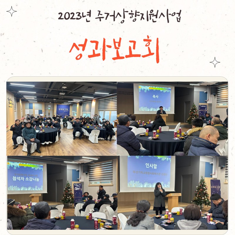 12월 26일(화) 16시에 부산기독교종합사회복지관 타운센드관에서 주거상향지원 사업 성과보고회가 진행되었습니다.
