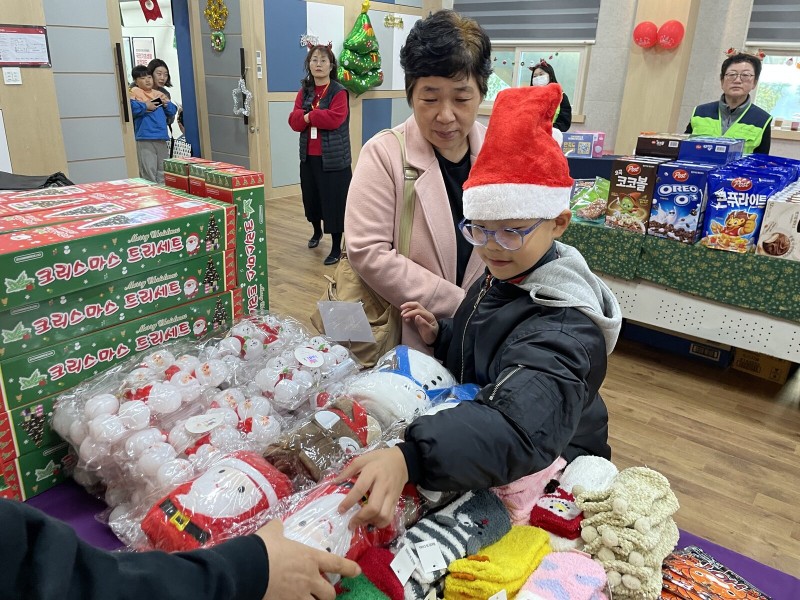 아동이 직접 선택하고 담아가는 아동권리형 나눔마켓 ‘초록이점빵N-미리메리크리스마스’가 11월 21일(화) 진행되었습니다.  70명의 아동들이 참여하여 미리 맞는 크리스마스를 맞이하여 트리, 목도리, 장갑, 장난감, 학용품, 라면, 과자 등을 고르며 자신의 선택권을 마음껏 누리는 시간이었습니다.