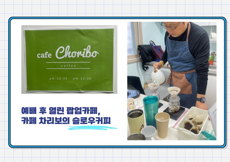교육이 끝나고 목사님께서는 카페 차리보로 직접 가져오신 다섯가지 원두로 직원들의 기호에 맞춰 슬로우커피를 내려주셨습니다. 오랜시간 정성들여 직원들 한 사람 한 사람을 위해 사랑으로 내려주신 맛있는 커피 덕분에 저희들도 돌봄의 손길을 받은 은혜의 시간이 되었습니다.