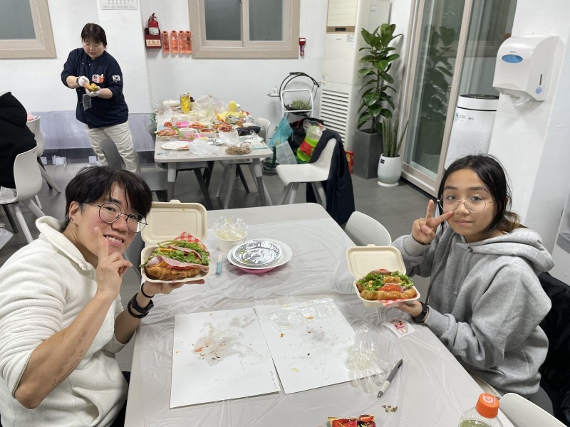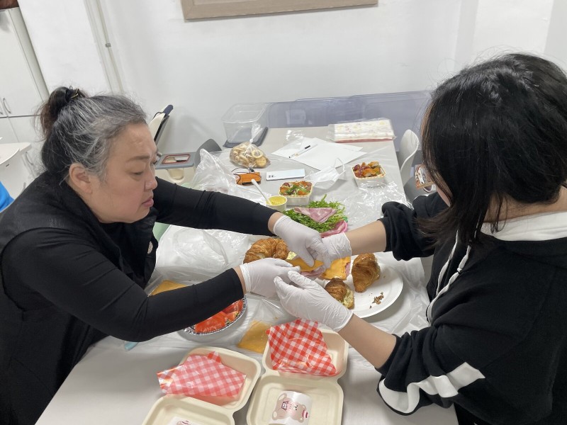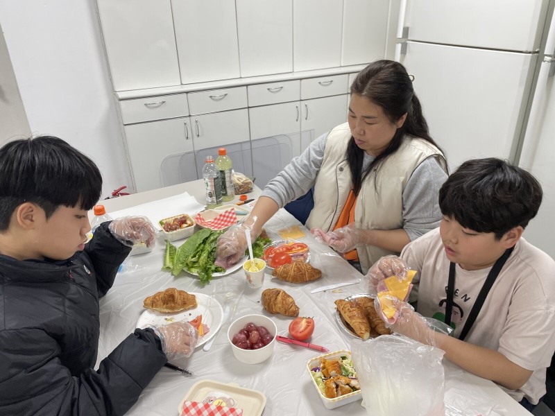 이후에는 가족과 함께 속닥속닥 대화하며 신선한 재료로 치킨 샐러드, 크로와상 샌드위치 만들기를 하며 가족과 추억을 쌓았습니다. 이번 푸드아트테라피 활동이 대화의 통로가 되어 가정내에서 서로의 마음을 공유하는 시간이 많아지길 기대합니다.