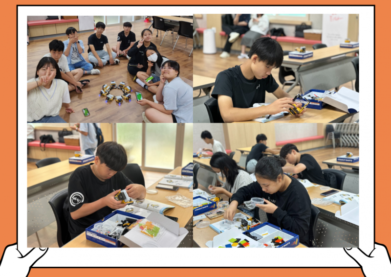 축구로봇을 직접 만들어보고, 로봇에 코딩프로그램을 연결하여 축구게임도 해보는 시간을 가졌습니다.