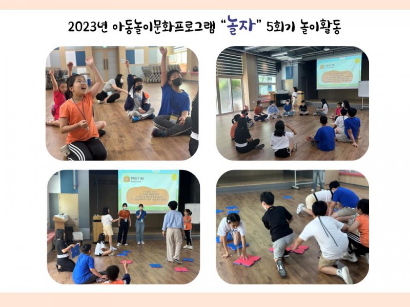 목록 아동놀이문화프로그램 "놀자" 6회기 놀이활동 페이지 정보 최고관리자 조회 908 입력 2023-06-24 13:04 댓글 0 본문 2023년 6월 24일(토)놀자의 여섯 번째 놀이활동이 있었습니다.이번활동에서는 ‘, 그림맞추기 게임, 넌센스퀴즈, 수건돌리기, 판뒤집기’ 놀이를 함께 하면서, 함께 웃고 떠들며 즐거운 시간을 가졌습니다. 목록 이전글2023 서구희망교육지구, 마을교육공동체 선진지 탐방 2023.06.26 다음글꿈디자이너 비전원정대 2023.06.20 댓글 0 댓글목록 등록된 댓글이 없습니다.