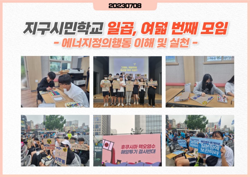 최근 에너지와 관련한 급박한 이슈인 '후쿠시마 핵 오염수 방류' 문제를 두고 우리에게 어떤 영향을 미치는지 다시 정리해보고 각자의 생각을 담은 피켓을 제작하여 부산역 광장에서 열리는 오염수 방류 반대에 함께 목소리를 보탰습니다.