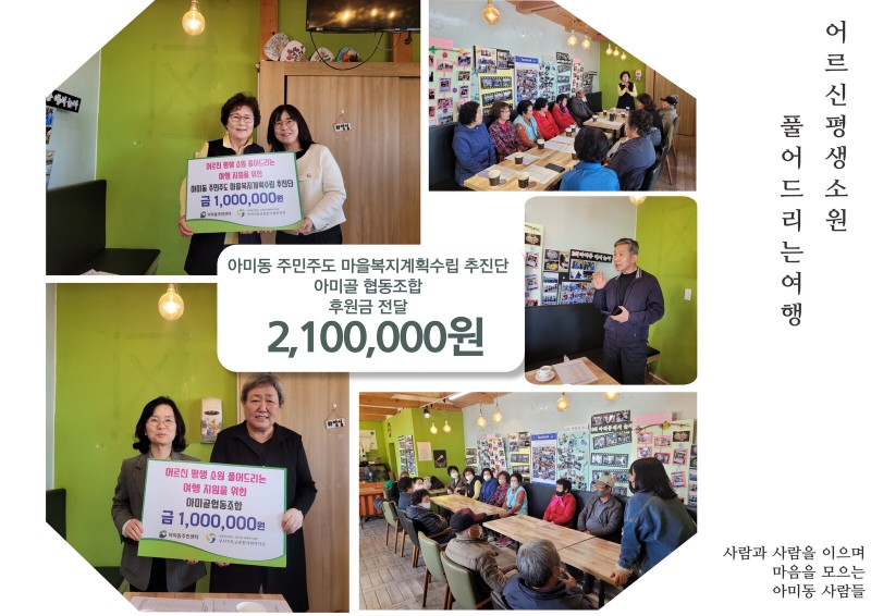 기찻집예술체험장을 운영하고 있는 아미골협동조합(윤지선 이사장)에서 100만원을 쾌척해주셨습니다.