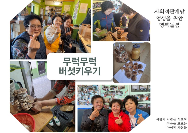 홀로계신 어르신들을 위해 진단의 의견으로 시작된 버섯키트 재배하기는 하루다 다르게 무럭무럭 자라서 어르신들이 신기해하십니다.