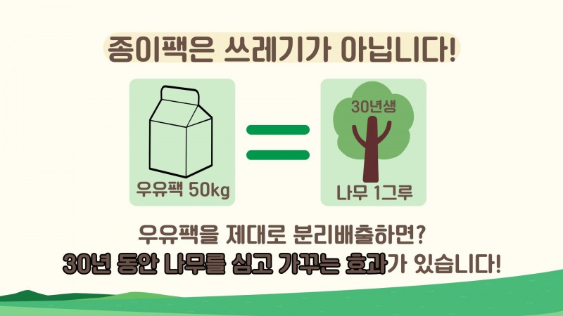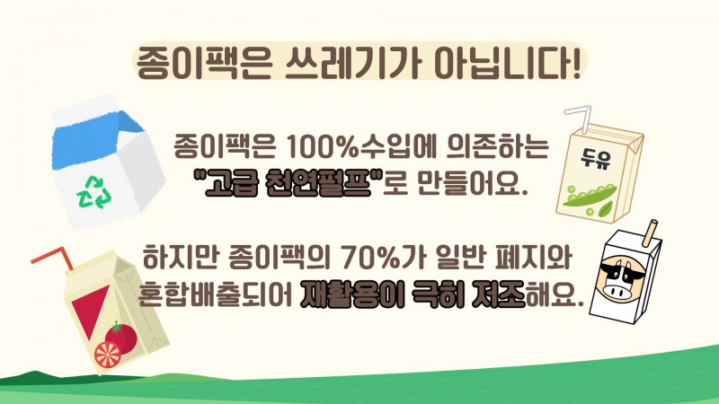 천연 펄프를 사용해 만든 '종이팩'은 화장지로 재활용가능한 소중한 자원입니다.
