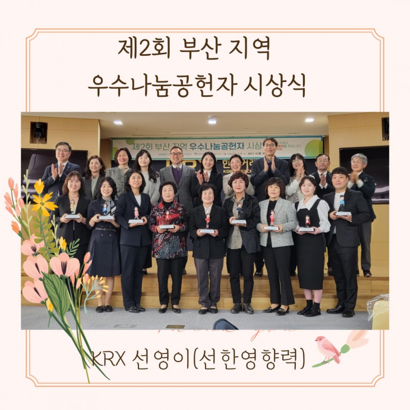 제2회 부산 지역 우수나눔공헌자로 수상을 하게 되었습니다.