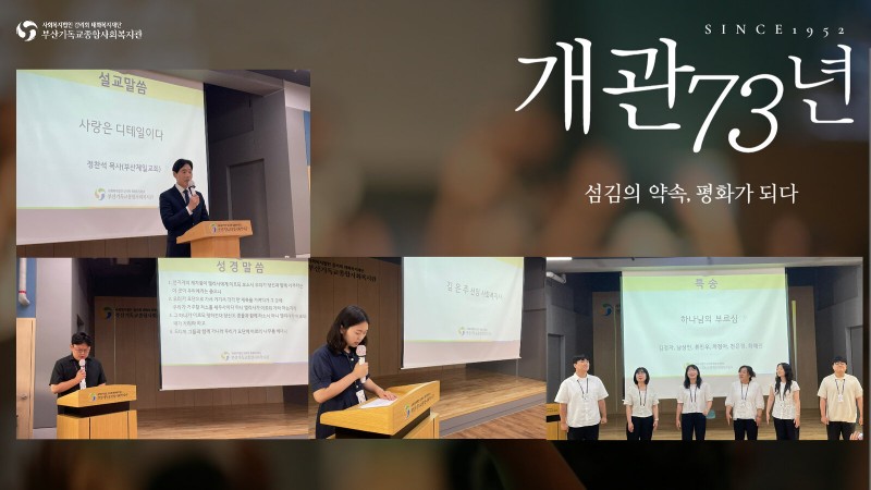 부산기독교종합사회복지관은 개관 73주년을 맞아 전 직원이 함께 감사예배를 드렸습니다.