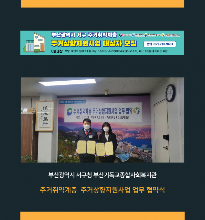 문의 : ☎ 051)710-9401 부산기독교종합사회복지관 주거복지상담센터 이윤정 사회복지사