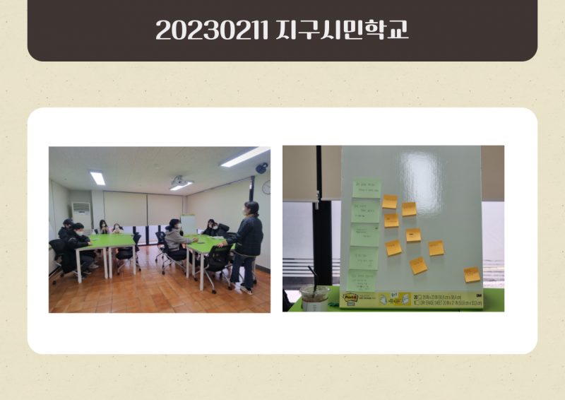 그 후에는 2023년 지구시민학교를 위해 서로 이야기를 나눠보았는데요.