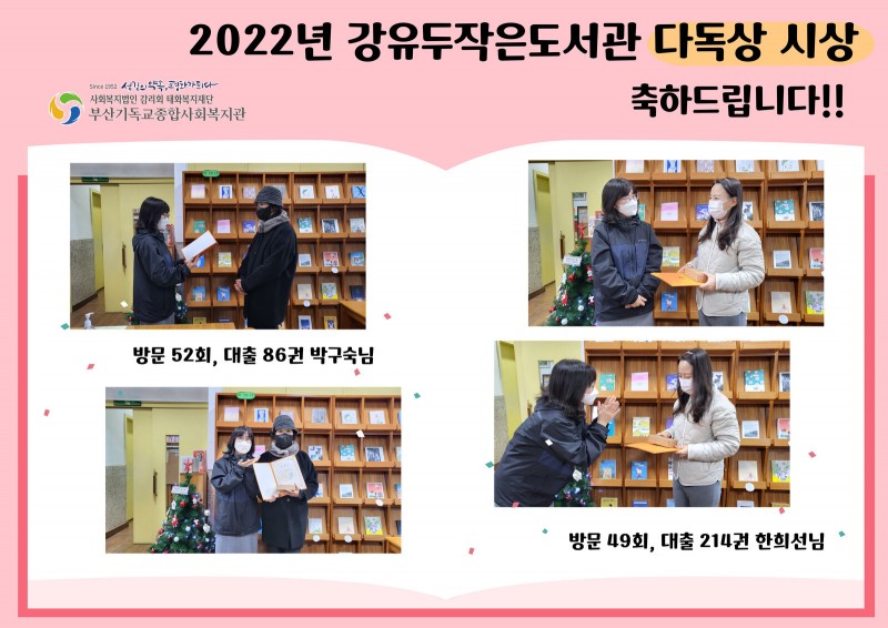 많이 이용해주신 분들을 선정하여 다독상을 시상하였습니다.