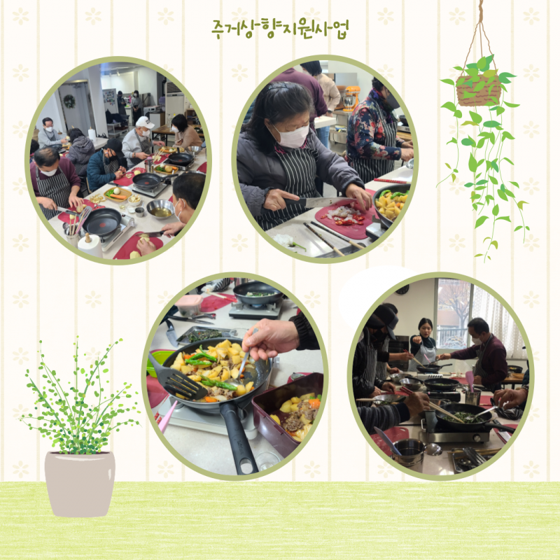 집단요리활동을 통해 건강한 식행활을 지원하고 사회관계망 형성 및 생활력을 향상할수 있었습니다.