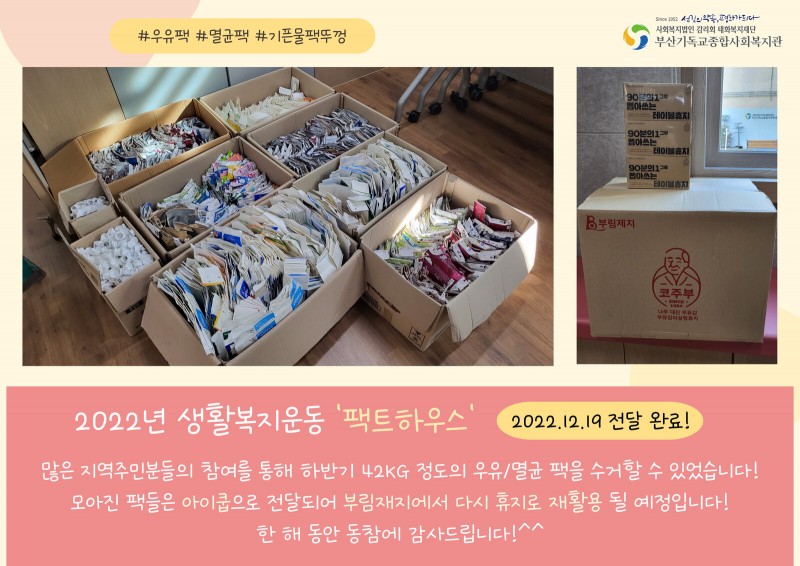 * 팩트하우스는 상시 운영되며, 복지관 1층에 수거함에 자유롭게 넣어주시면 됩니다.