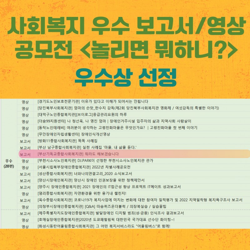 사회복지 우수 보고서/영상 공모전 우수상 수상