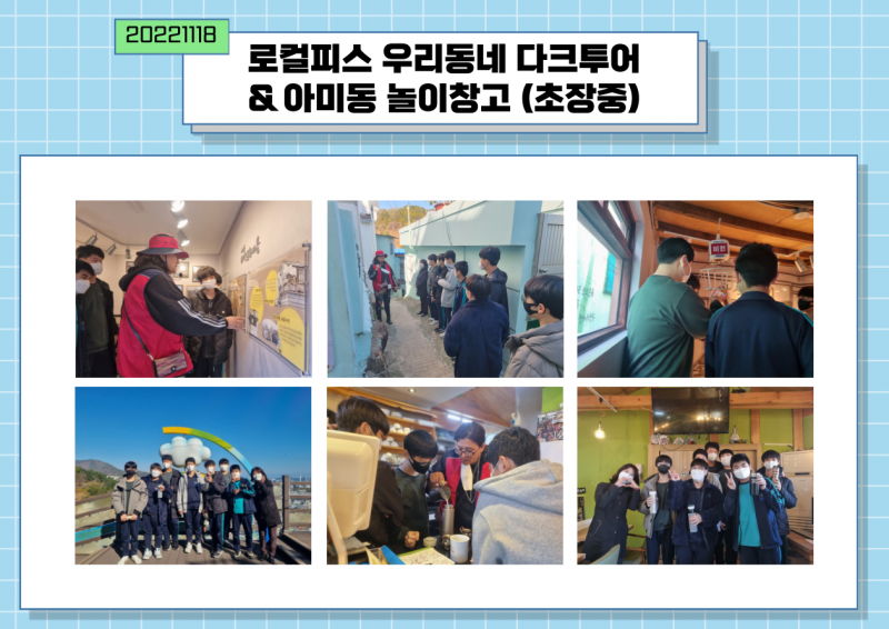 지난 금요일, 코로나로 인해 학교 내에서만 활동했던 초장중학교가 처음 아미동 마을로 나왔습니다!