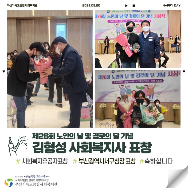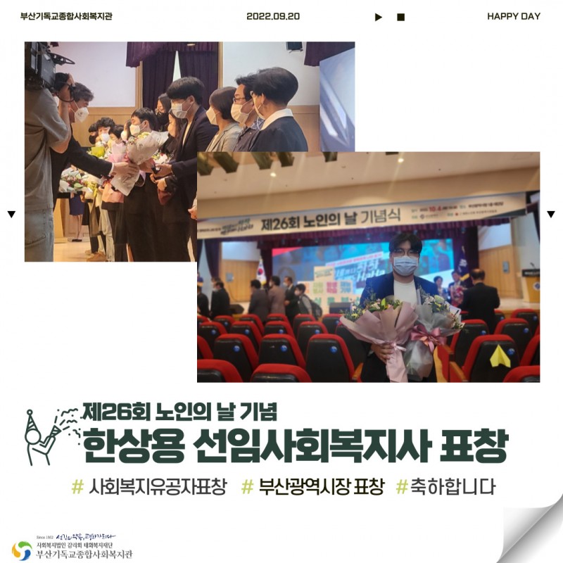 제26회 노인의달을 맞이해 한상용 선임사회복지사가 부산광역시 시장 표창을,
