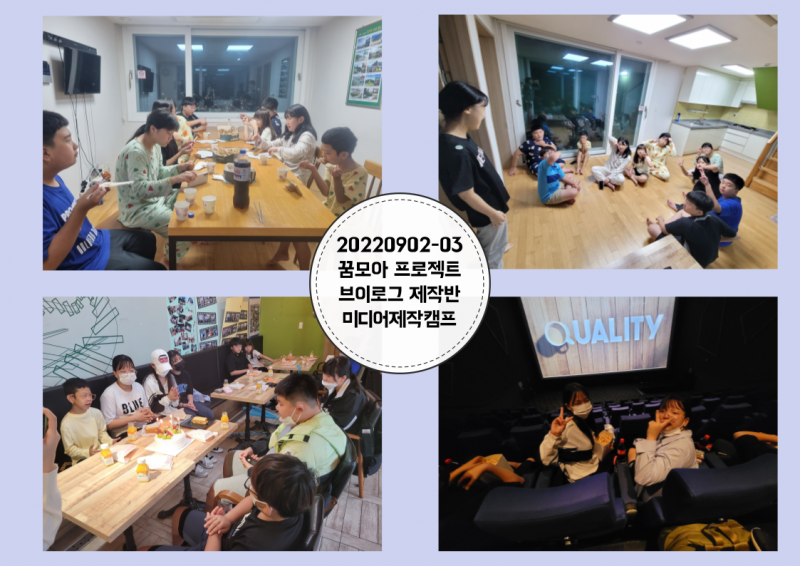 지난 9월 2일 금요일, 성장발표회가 끝나고 시작된 미디어제작캠프로 브이로그 제작반 꿈모아들은 그 누구보다 뜨거운 여름밤을 보냈습니다.