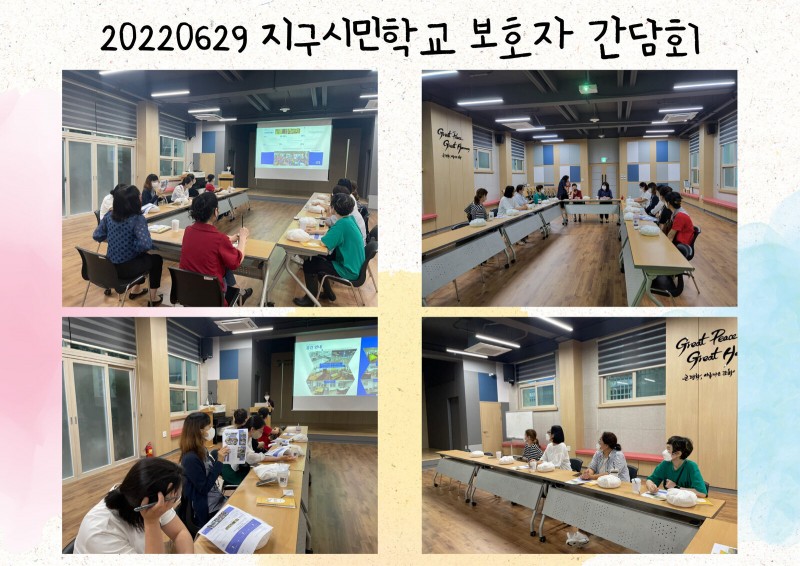 비가 오락가락 하며 그치지 않고 오던 수요일 저녁 7시, 지구시민학교 참여자들의 보호자님 10분이 복지관을 방문해주셨습니다.