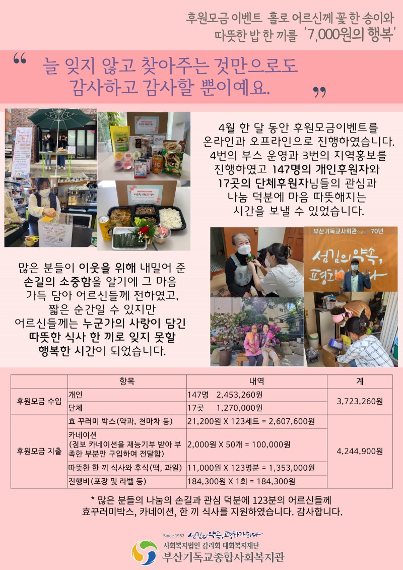 그리고 복지관 70주년을 기념하여 "7,000원의 행복"이 진행되었습니다!