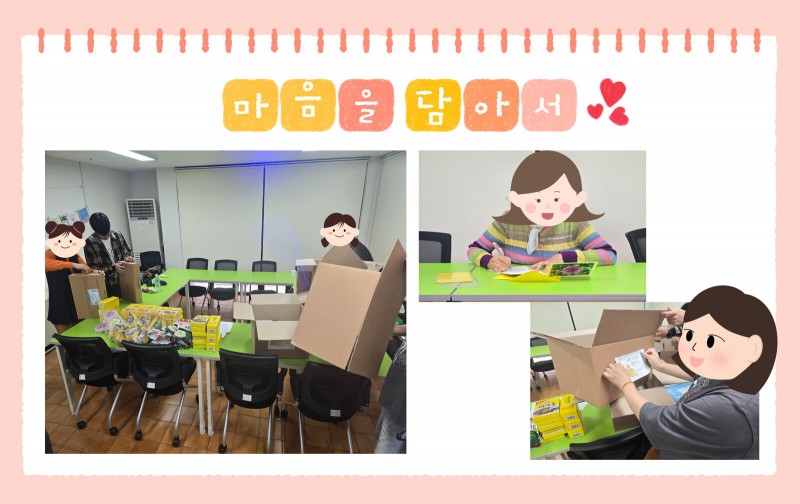 또한, 1인 가구를 위해서는 마음건강 자조모임 ‘수.다모임’ 참여자분들이 직접 선물꾸러미를 포장하고, 정성 가득 손편지도 함께 작성해 고립 우려가 있는 1인가구 이웃에게 따뜻한 마음을 전했습니다.