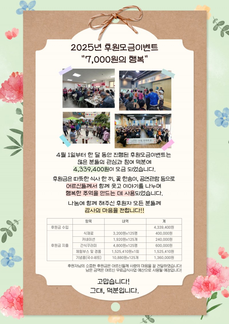 2025년 나눔의 기쁨, '7,000원의 행복'