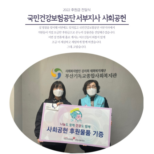매번 잊지 않고 따뜻한 마음을 전해주시는 국민건강보험공단 서부지사 직원들에게 감사의 마음을 전하며